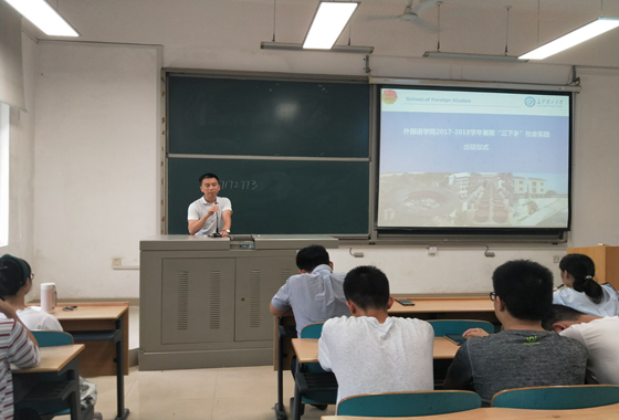 7月17日中午,外国语学院举办2017-2018学年暑期“三下乡”出征仪式。院党委副书记陈仁凯、分团委书记邹磊,学院暑期实践团队代表参加。