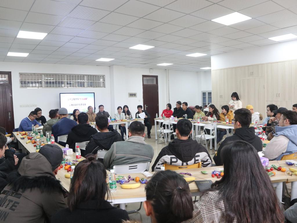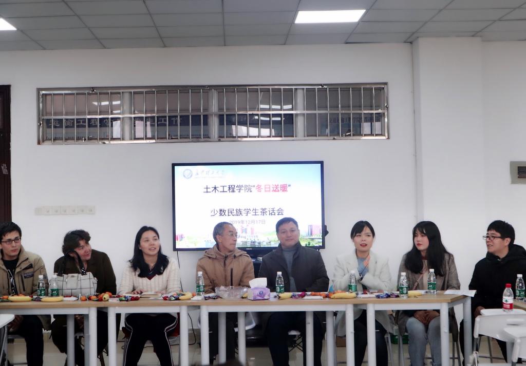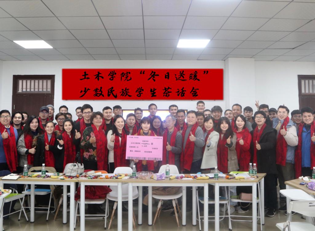 12月17日中午,土木学院在云塘校区工二B417举行了“冬日送暖”少数民族学生茶话会。院党委书记张可荣、党委副书记丁丹、副院长肖勇刚、学工部少数民族专干热米拉、木拉迪、学工办全体辅导员与学院46名新疆籍、西藏籍少数民族学生亲切畅聊并送上了冬日的温暖和关心。