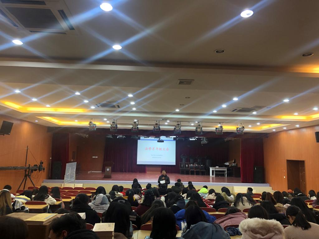 12月17日晚,法学系在文科楼模拟法庭举行年级大会,系党总支副书记田兴洪和法学系16、17、18级学生参加,由辅导员熊文娟。