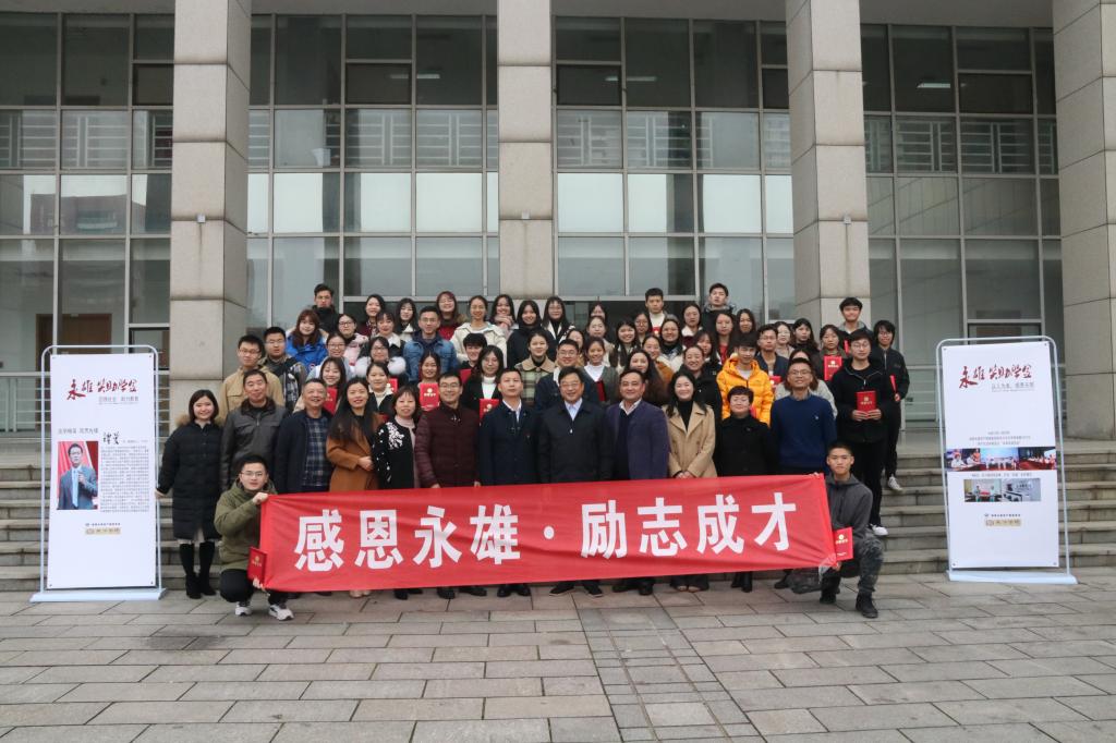 12月17日下午,2019年“永雄奖助学金”颁奖典礼举行。50名来自法学系、文学与新闻学系的优秀学子喜获“永雄奖助学金”。永雄集团党委副书记、副总裁李想、党群部总监喻艳梅,校党委副书记邹宏如、校友联络与社会合作服务中心副主任郑延恒,法学系、文新系部分领导出席颁奖典礼。活动由法学系党总支副书记田兴洪主持。