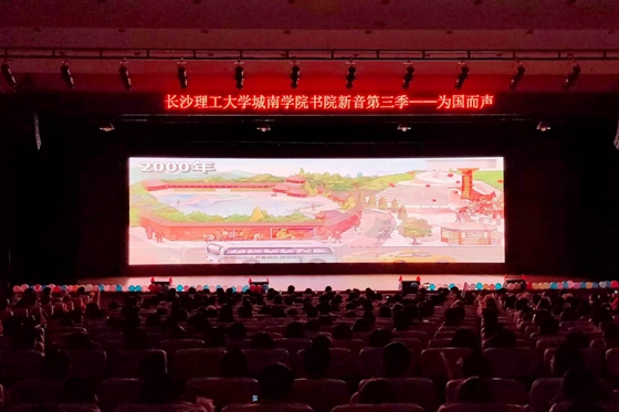 为进一步贯彻落实主题教育,12月18日晚,城南学院在金盆岭校区五教大礼堂举行第三季《书院新音》——“为国而声”总决赛,来自学院各系的十一名选手角逐最佳男女主持奖。此次活动由城南学院团委主办、湖南省大众语言艺术研究会播音主持专业委员会协办、交通土建系团总支承办。湖南教育电视台主持人陈铎、长沙广播电视台新媒体中心主持人白莹,城南学院党委副书记王明彦、校特邀党建组织员李河泉以及相关师生代表共计1000余人观看了比赛。