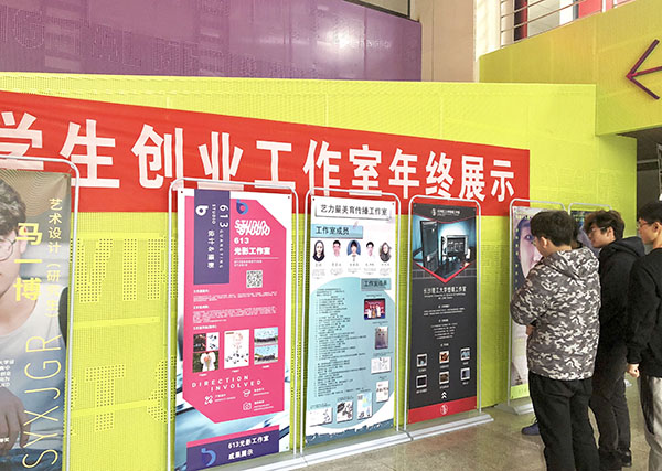 12月25日,设计艺术学院于建筑艺术楼大厅举办了学生创业工作室年终展,激发艺术学子设计的想象力与创新力。此次活动由创新创业部举办。