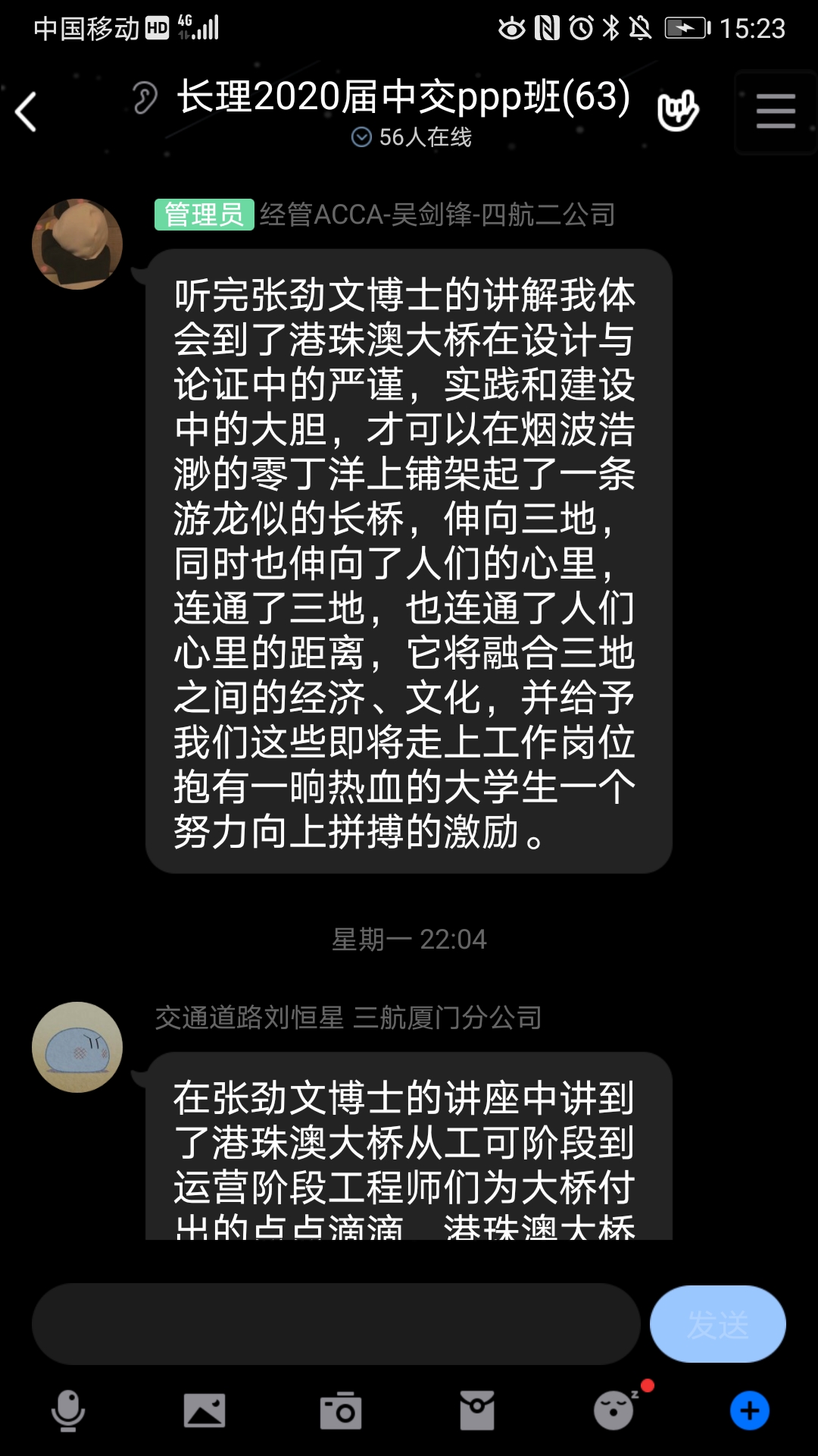 通过学习,学员们纷纷表示:之所以我们能够拥有如此伟大的超级工程诞生,那是因为有着党的坚强领导,有着万千工程人的齐心协力与默默付出。正如习近平总书记所说的那样,港珠澳大桥是一座圆梦桥、同心桥、自信桥、复兴桥。大桥建成通车,不仅进一步坚定了“四个自信”,更是充分昂扬了广大青年学子奋斗的激情。作为一名即将入职的工程人,亦将成为祖国建设大军中的一份子,我们愿倾尽自身所能,苦练本领,鼓足干劲,不断提升自己,为祖国的社会主义建设添砖加瓦。