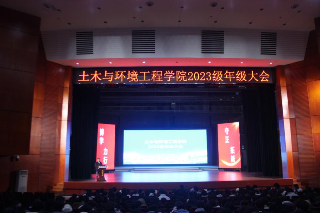 3月4日晚,土木与环境工程学院在大会堂召开本科生2023级年级大会。学院党委副书记吴振华,2023级辅导员龚丁、王海川及2023级全体学生参加。