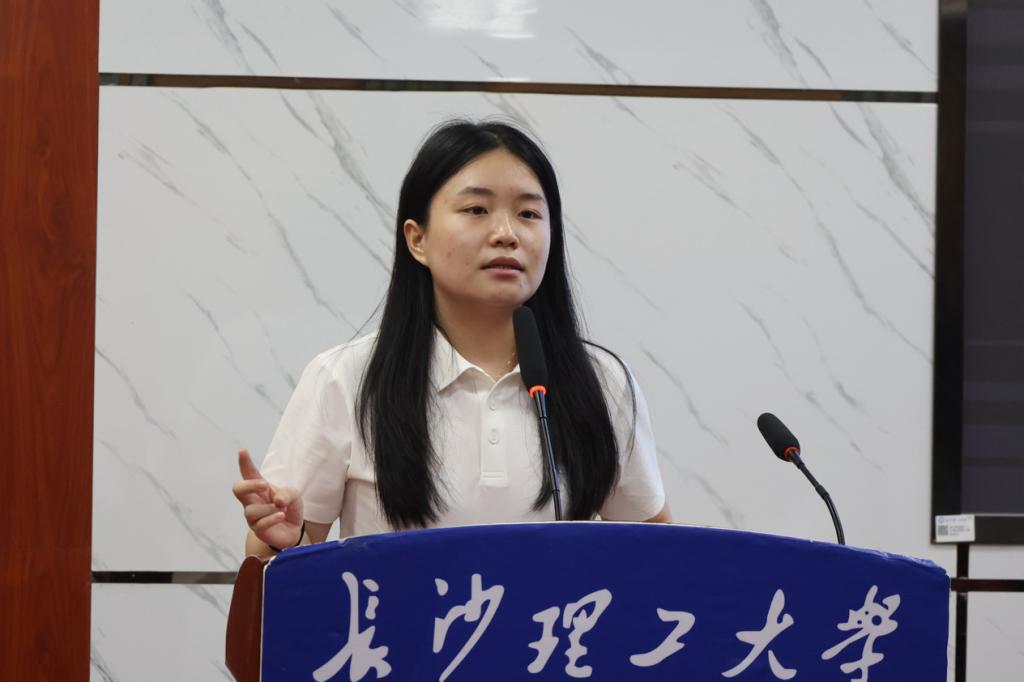 孙佳乐叮嘱同学们遇突发事件要保持冷静,第一时间联系辅导员,切勿盲目处置,切实保障自身安全。她通过具体案例,提醒同学们注意消防安全、用电安全、食品安全、防汛安全等。