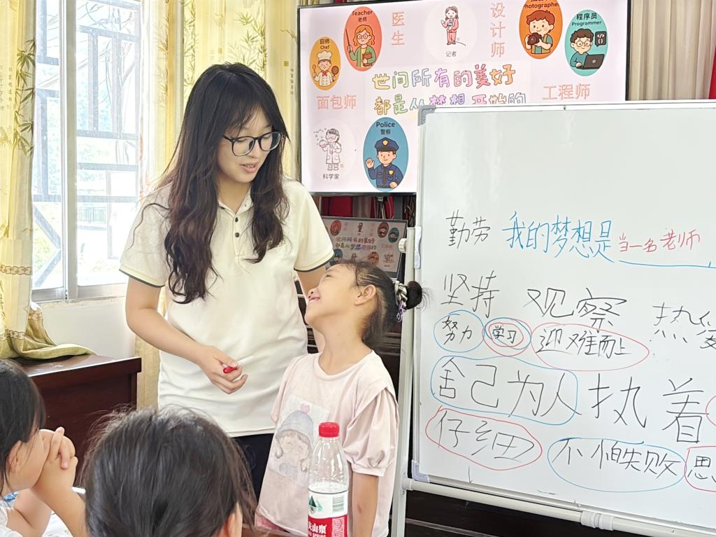 “执着!”“不怕失败!”“舍己为人!”7月19日,张家界桑植县走马坪白族乡一间村支部教室内,物理与电子科学学院“小小科学家”团队带来的“科学家精神”主题课气氛热烈。孩子们争先恐后写下的关键词,成了他们追梦路上的“指南针”。