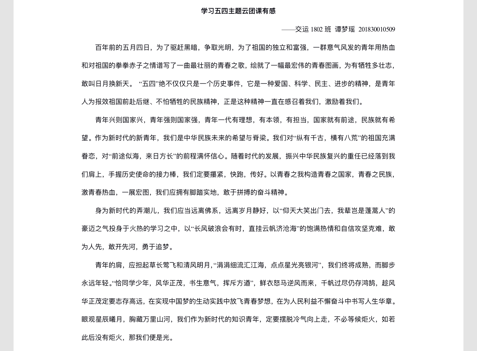 在“百年风华,青春杨帆”系列活动中,各团支部分别开展了红色影片观影活动、红色书籍分享会、红色教育基地游览活动。同学们在红色影片的观影过程中感受共产党员对革命信仰和爱国精神的守护,在红色经典书籍分享会中领略红色精神,在红色教育基地游览活动中体会烈士们慷慨赴义的精神。交运1906班周逸瑄分享到:“我看见了中国共产党百年征程的波澜壮阔,也见证了百年初心的历久弥坚。作为新时代的青年,我们应常思国之兴衰,常怀复兴之志,凝心聚力学党史、砥砺前行强信念。”