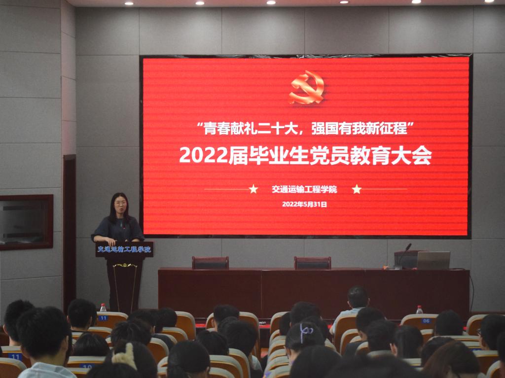 5月31日下午,交通运输工程学院在云塘校区工二交通报告厅召开“青春献礼二十大,强国有我新征程”——2022届毕业生党员教育大会,本次大会由党建辅导员肖敏强主持,党委副书记涂道勇、18级辅导员曹骁及2022届全体毕业生党员参加大会。