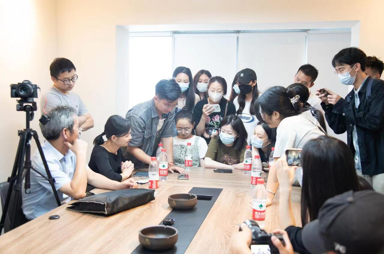 校企双方在会议室就各自发展现状及需求做进一步沟通交流。在交流过程中,蚂蚁星球IP孵化负责人吴新星就“如何轻资产轻模式轻人力打造属于你的个人商业IP”一题分享了短视频运营的技巧以及方法。针对如何创作一条有故事性的vlog ,吴新星通过现场实操进行直观讲解,并快速产出一条短视频。他认为,知识的流动价值远比知识本身更重要,希望大家学会挖掘热点视频的内在规律,拥有不怕失败的恒心,真正落实到行动。他的讲述赢得了在场同学的阵阵喝彩。