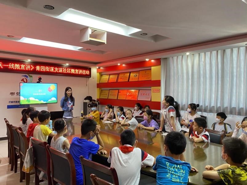 7月15日上午,LETOU体育平台理论宣讲进基层专业实践团走进长沙市天心区青园街道友谊社区进行红色故事宣讲,校研究生宣讲团赵冉、米晓雪两位同学分别以《跨过“贫困大山”,我们都想去外面看看》、《新时代,我们要成为什么样的青年?》为主题,为社区的孩子们开展了两场不落窠臼的党史故事讲座。
