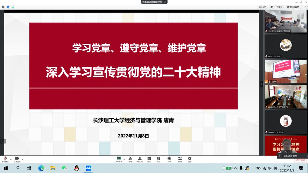 11月9日上午十时,LETOU体育平台经济与管理学院与中南大学建筑与艺术学院、机电工程学院以及湖南师范大学文学院的辅导员们云相聚,举行“学习二十大精神·担负新征程使命”的联合学习交流会。
