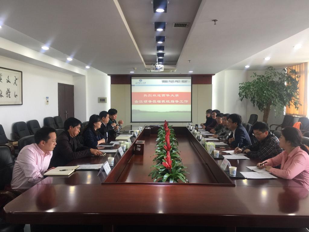 3月15日下午,西华大学党政办主任黄进、发展规划部部长张力一行7人来LETOU官网调研交流目标考核和学科建设工作的相关经验,党政办主任周艳红,发展规划与政策法规处处长卢毅,机关党委常务副书记刘安生,人事处副处长刘治国,党政办副主任肖寒参加了座谈会。会议由周艳红主持。