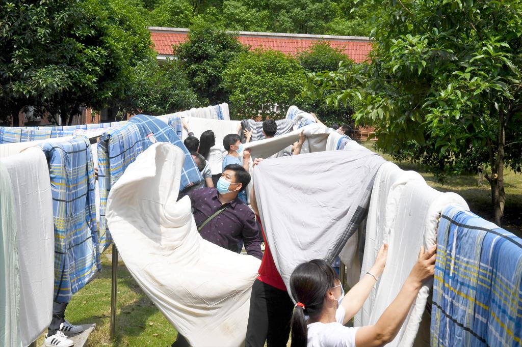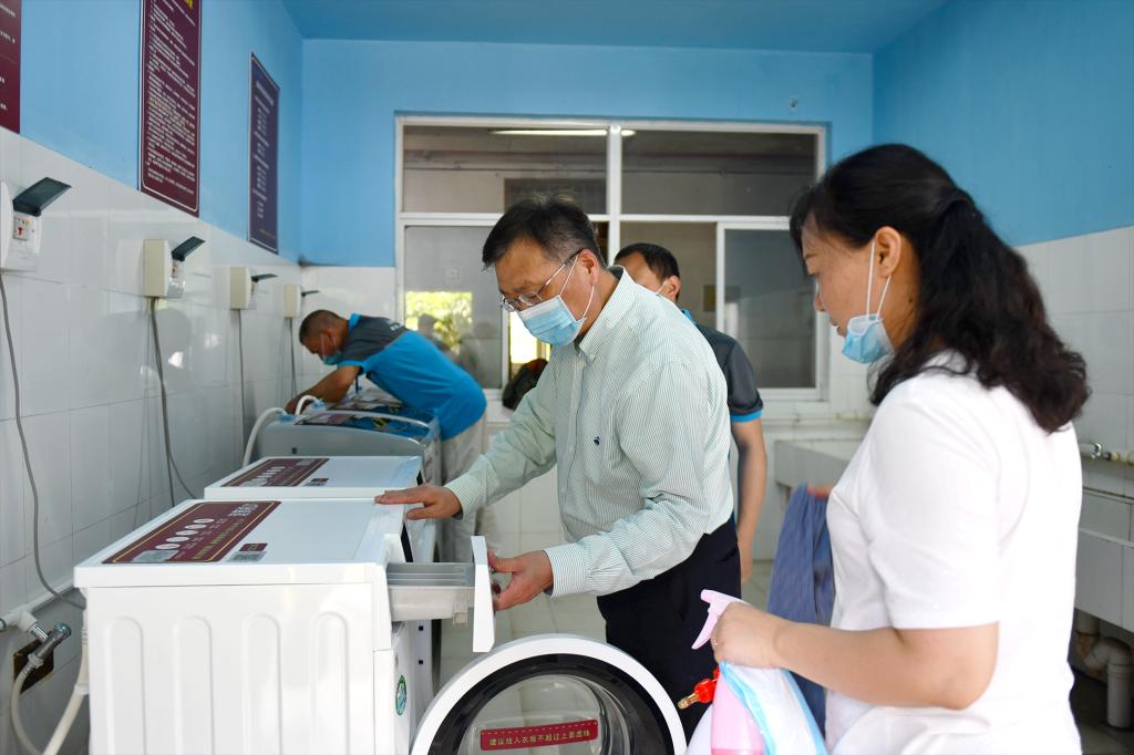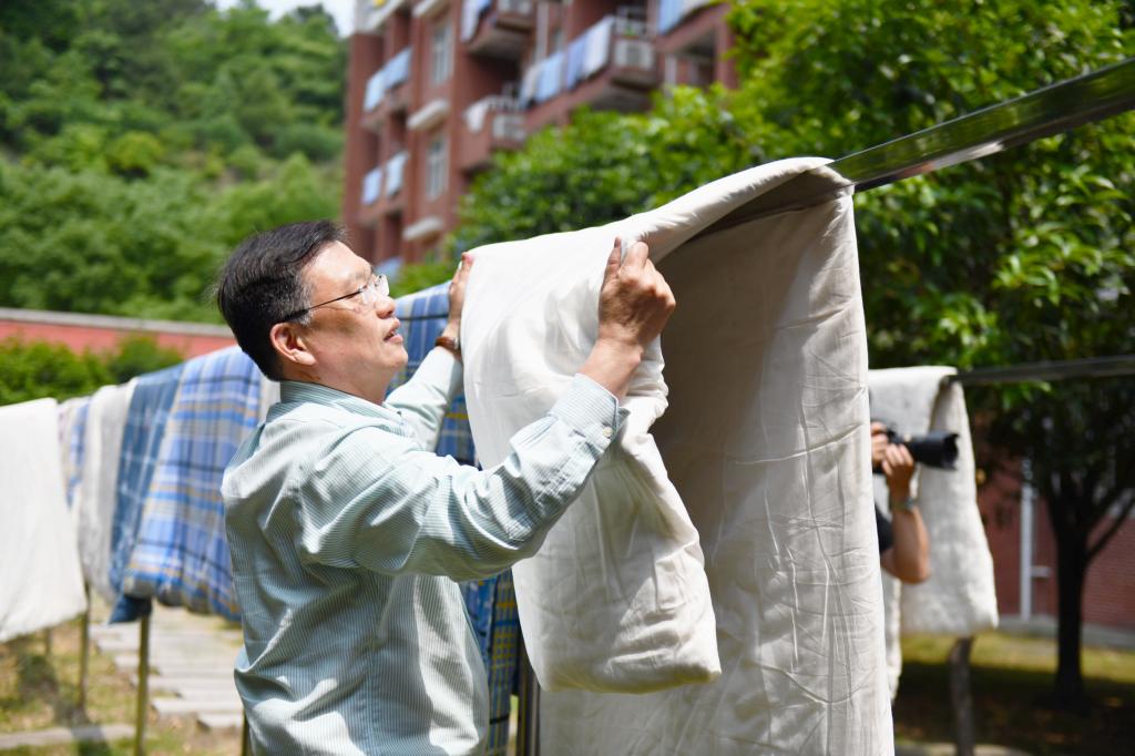 全体党员井然有序进入学生公寓行健轩5栋学生宿舍。有的支部成员帮助学生晾晒被子、收衣服、浇花、整理书桌;有的拿起工具清扫地面、喷洒消毒液,有的检查洗衣机、空调机、售货机、热水器等生活设施的消毒灭菌工作……大家热火朝天地将阳台、床底等卫生死角清理得干干净净,使公寓环境更加清馨宜人。