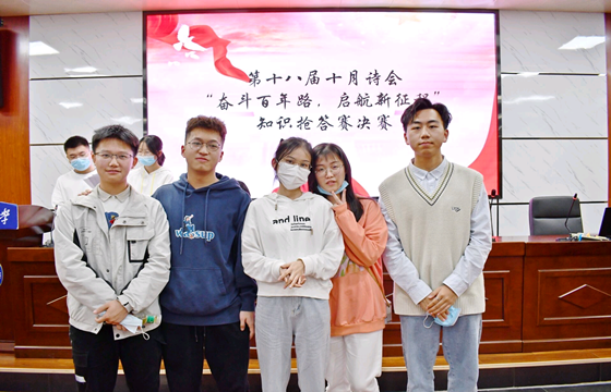 11月2日晚,第十八届十月诗会“奋斗百年路,启航新征程”知识抢答赛决赛于金盆岭校区举行。电气学院的选手们击败其他五支队伍,夺得桂冠。