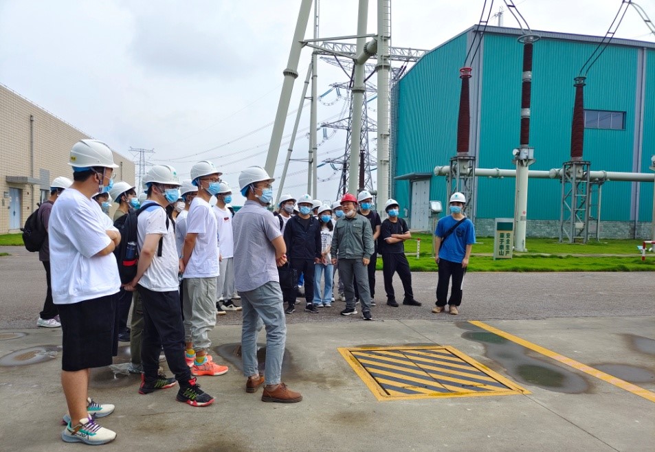 随后,蒋久松和电气学院夏向阳教授、换流站运维班班长刘源共同为研究生授课。结合换流站生产实践,研究生在换流站工作人员的带领下参观直流场、交流GIS、500kV交流滤波器场区、调相机等功能区域,夏向阳结合专业课程知识联系现场详细介绍了各设备的结构和运行原理,并结合中西方电力工业体制的比较,为同学们介绍了中国特高压技术发展的历程。