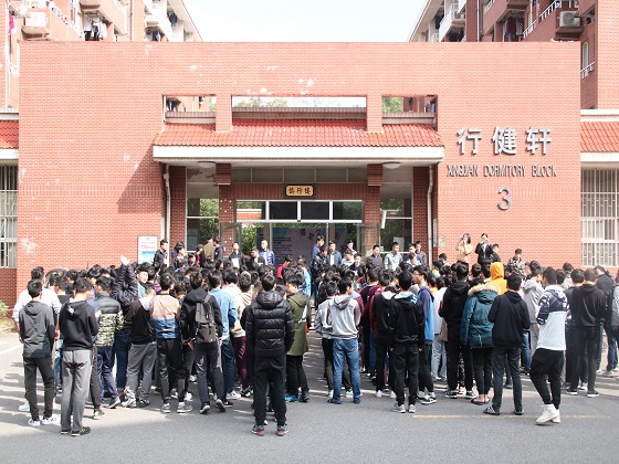 为切实加强同学们对消防安全的认识,提高同学们在火灾发生时的处理能力,筑牢学生公寓“防火墙”,11月9日中午,交通学院举行消防应急疏散演练。本次演练由交通学院学生社区自管会组织,交通学院党委副书记田上、学工办彭笠、马玉文、肖敏强以及全体寝室长参加。此次消防安全演练是“消防安全寝室文化周”的系列主题活动之一。