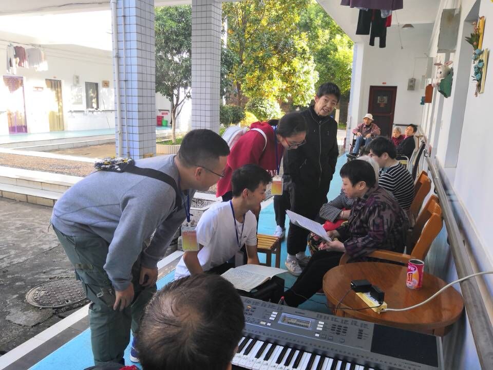 上午9点,志愿者们在雨花区福利院门口集合完毕,老人们热情欢迎志愿者们的到来。志愿者们首先听老人们奏琴合唱,后也参与其中,与老人们聊天互动、一同歌唱,氛围温馨融洽。慈祥的老人们向志愿者们敞开心扉,在与老人交流的过程中,志愿者仔细聆听老人们讲述改革开放前后的经历,意识到今天的幸福和平生活来之不易,今后应更加努力学习。同时,志愿者们开展打扫工作,为福利院增添一丝整洁。