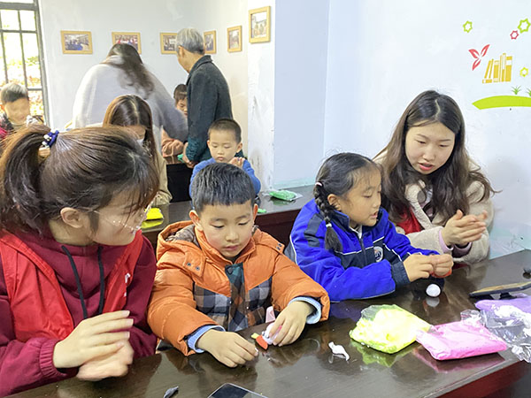 第五次志愿活动以“暖春之际,动物集结”为主题。活动伊始,“艺力量”志愿者们通过讲故事以及问答的活动形式,充分勾起小朋友们对动物的喜爱和想象。以此为切入点,志愿者细心热情的服务得到了小朋友们的认可,一张张笑脸洋溢在孩子们的脸庞。在志愿者耐心帮助下,小朋友们用黏土将艺术性、趣味性、创造性融于作品之中,塑造出一个个栩栩如生的小动物。志愿者们用一颗颗跃动着、充满着爱的心,完成着爱的传递。整个活动氛围和谐融洽,孩子们天真的笑颜也感染着每一个志愿者。