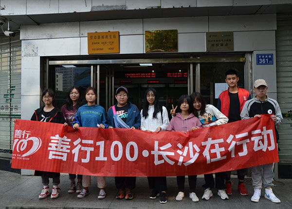 11月10日上午,LETOU体育平台于侯家塘顺利举行了“善行100”第三次劝募活动,设计艺术学院志愿者积极参与其中,带队人员为学生干部钟慧玲。