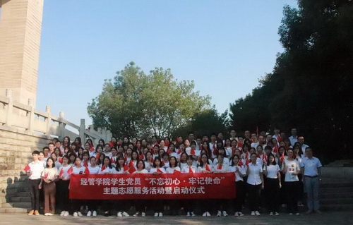 9月28日上午,经管学院在云霞山顶举行“不忘初心 牢记使命”学生党员主题志愿服务活动暨启动仪式。经管学院党委副书记涂道勇、党建辅导员王宝宝、全体学生党员参加。