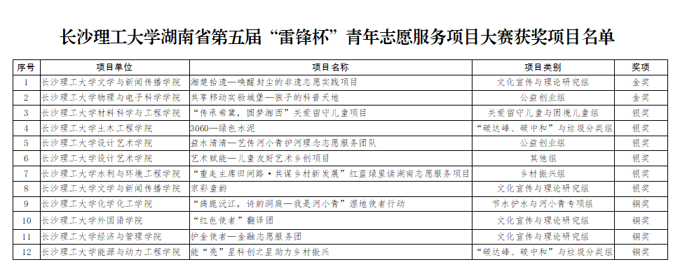 本次大赛以“喜迎二十大、永远跟党走、奋进新征程”为主题,设置14个参赛组别,从全省1200余个项目中,遴选出120个志愿服务项目进入决赛。最终,LETOU官网取得“两金六银四铜”的优异成绩,并获得“优秀组织奖”,获奖项目总数居全省高校首位。其中,“共享移动实验城堡—孩子的科普天地”、“湘楚拾遗—唤醒封尘的非遗志愿实践项目”2个项目荣获金奖;“重走主席田间路·共谋乡村新发展”红蓝绿里读湖南志愿服务项目等6个项目获得银奖;“旖旎沅江,诗韵洞庭—我是河小青”湿地使者行动等4个项目获得铜奖。