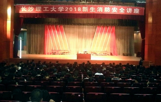 长沙市普消培训机构的教官从怎样安全用火用电、遇到火灾怎样报警逃生和怎样使用灭火器防毒面具等方面为新生详细讲解,讲座中场面生动,互动热烈,安全意识得到提高。