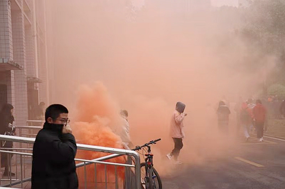 讲座结束后,20级新生在工作人员的组织下,有序地进行了消防演练