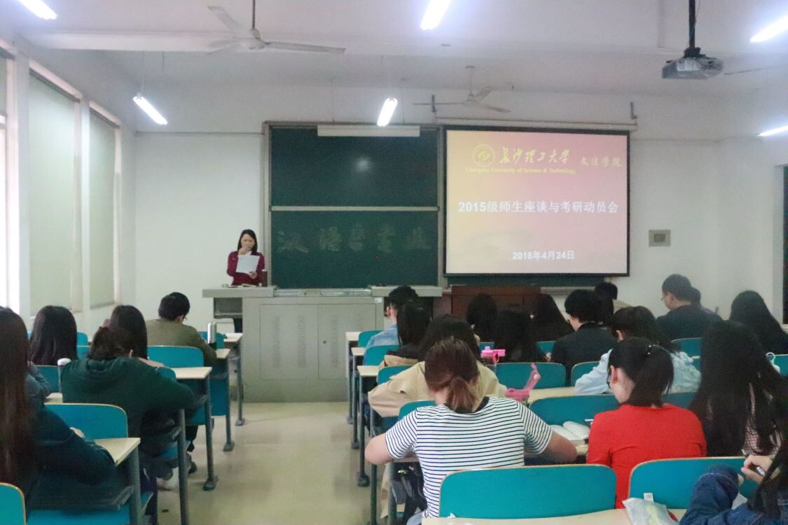 为帮助学生尽早、尽快地在考研准备中找准方向、明确目标、凝聚力量,4月24日下午,文法学院汉语言文学专业在文科楼C402举办考研指导讲座,院长王新生、党委副书记兼副院长魏桃初、学工办主任何凌及汉语言文学专业指导老师到场进行指导以及分析,并邀请到成功考研以及签约就业的学长学姐为在场同学答疑解惑,2015级、2016级汉语言文学专业学生到场聆听。