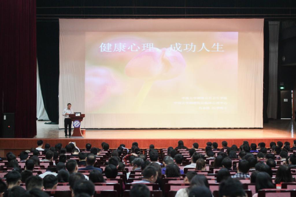 讲座一开始,肖水源教授就从什么是心理、为什么要有健康心理两方面说明了心理健康的重要性,同时以杨利伟、加加林等例子强调人有信心才是心理成熟的标志。随后,在谈及心理问题及其影响时,他从如何区别正常与异常心理、心理健康问题有哪些类别这两个问题展开,着重介绍了抑郁症的常见表现以及关于自杀预防的一些常识。同时,他提出了心理保健的九大基本原则,即树立正确的价值观、正确设立人生目标、正确理解和接受社会现实、正确认识和善待自己、坚守做人的原则、培养良好的思维方式、正确处理挫折和打击、控制和管理自己的情绪以及积极寻求帮助。