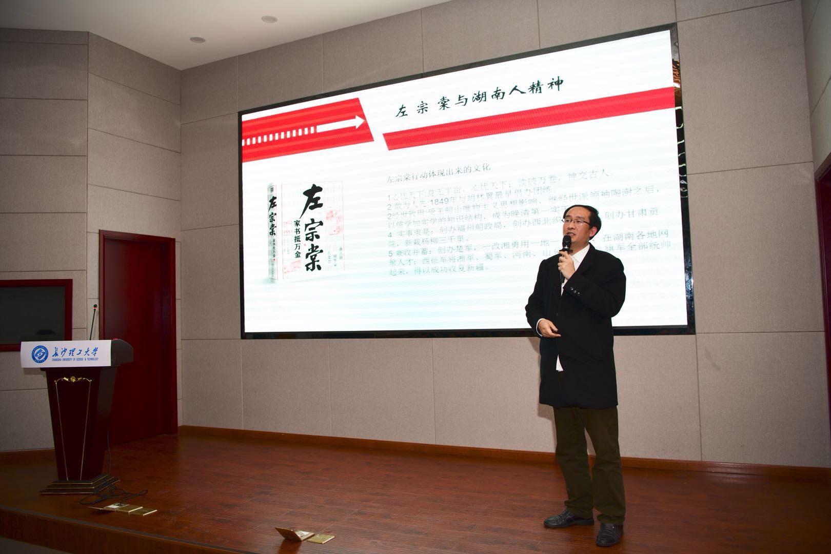 4月2日下午,以“溯文化名人足迹,论湖湘文脉初心”为主题的“探寻湖湘文化印记”之溯源左宗棠主题论坛活动在LETOU官网交通学院报告厅举行。著名作家、当代湖湘文化拓新者、左宗棠研究者徐志频主讲,湖南师范大学教授、原省委宣传部副部长、省社科联主席郑佳明,省人民政府参事、LETOU官网成松柳教授出席,省作家协会副主席、湖南日报教科文卫新闻中心执行主任、《湘江周刊》主编龚旭东主持。交通学院和文法学院师生两百余人参加活动。