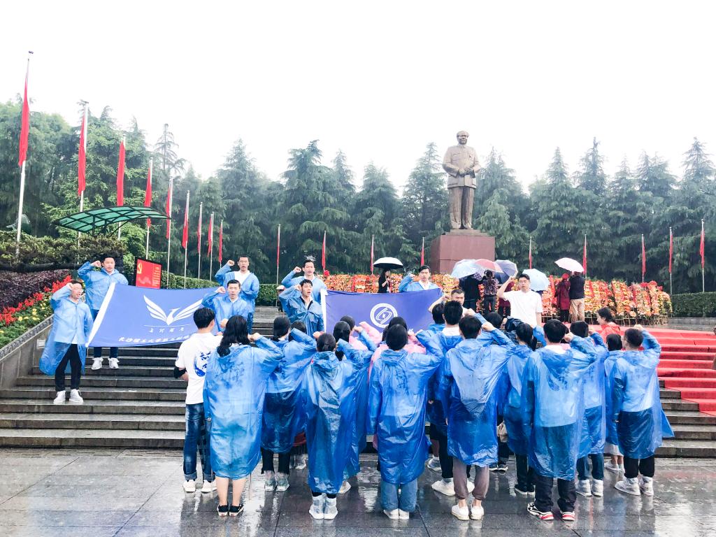 雄鹰班学员们在实践中成长,先后经历了曝晒和暴雨天气的考验,经受住了长途跋涉对精神和身体的双重极限挑战,用脚步丈量青春,切身感受湖南的发展与变化。行进期间,旗帜飞扬,一路歌声不断,大家利用休息时间开展了红色故事分享会,原创诗歌创作,实时打卡等活动,气氛活跃,斗志昂扬。没有人掉队,没有人退缩,比预计时间更是提前了半小时抵达“红色圣地”——韶山。在韶山,开展了系列爱国主义教育。向毛泽东铜像献花,在大雨中庄严宣誓,“翱翔九天不朽青云之志,逐梦一心建功时代辉煌!”誓词掷地有声!《睹主席遗物,学伟人风范,做合格党员》的精品党课滋养润心。在交流分享会上,经管学院杜逢清提到,“这将成为我人生最重要的记忆,在这样一个交通发达的时代,我们体验了一次长途跋涉的艰辛,在雨中我们互相搀扶,互相鼓劲,让我倍感温暖。想到红军长征二万五千里,真切地让我们感受到了信仰的力量。”