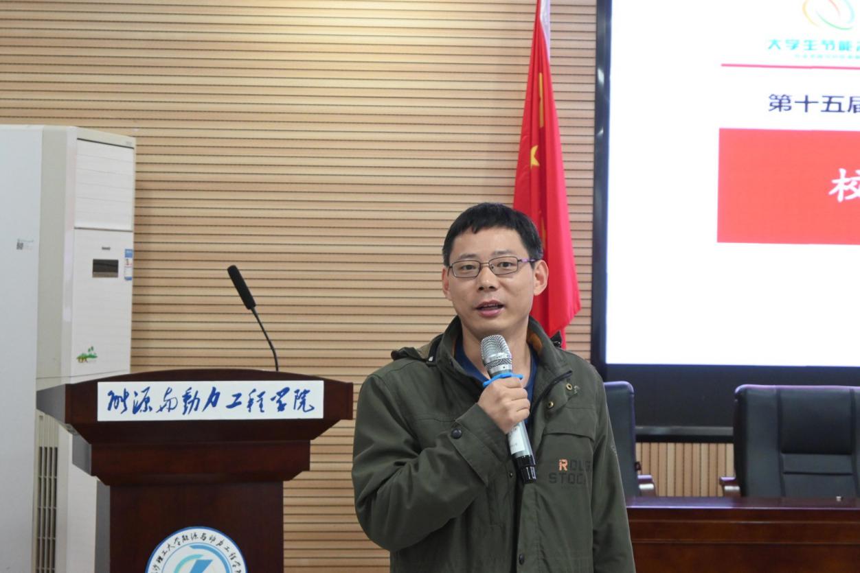 10月16日,第十五届节能减排大赛校内选拔赛动员会在新能源大楼502会议室举行,能动学院老师张巍、宋权斌,学工办老师李文豪参会。