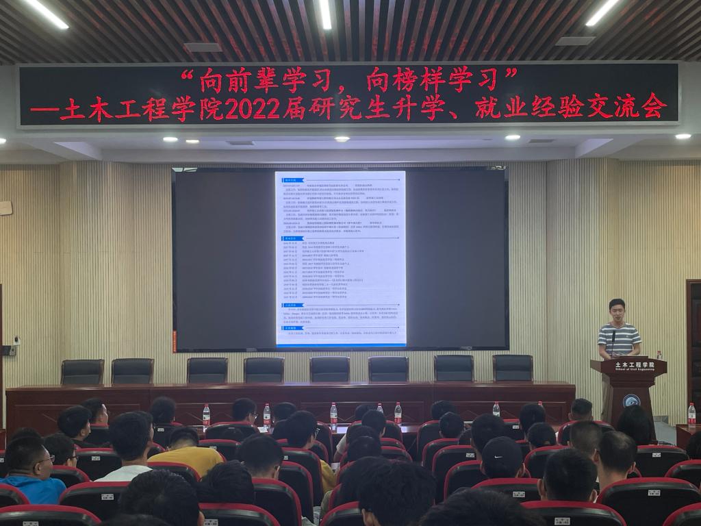 为更好地传承2022届研究生升学、就业经验,提高2023届毕业生就业质量,6月10日,土木工程学院在院学术报告厅举办“向前辈学习,向榜样学习”——2022届研究生升学、就业经验交流会。学院党委副书记黄阿明,研究生辅导员李小军及2023届研究生参加活动。专硕2020级党支部书记杨莹主持会议。