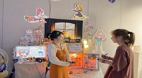 在主题展览即设计艺术学院2022级毕业设计展上,勤工助学部工作人员特别采访了曾受到过学校资助的数媒1801班刘家悦同学及环艺1802班成海睿同学。数媒1801班刘家悦同学在采访中表示:“感谢学校的资助政策,让我可以专心学习专业,缓解我的负担。”环艺1802班成海睿在采访中表示:真的很感谢学校的资助育人,让我感受到了院校的关怀关心,才使我可以更加自信面对生活、学习、及工作,助我更好的成长成才。