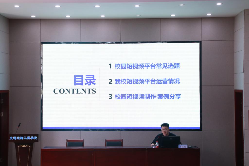 伍佩桢从微信公众号制作的时效性、典型性、真实性、原创性展开课程,详细讲解了微推内容的选题、制作形式、标题编辑等,同时也指出公众号运营存在活跃度低、过度娱乐化等问题。刘飘逸主要对校园消息稿的含义、写作要点、常见误区等进行讲述,用具体实例来说明校园竞赛稿、会议稿以及活动稿的写作方法和要求,并希望学生干部能够以严谨、细心的工作态度去撰写新闻稿。李泰儒从内容选材,角度选择,运镜形式讲授了校园短视频的制作方法,他强调要学会抓住大众的心理,把最精彩的片段放在视频的开端,才能够获得更多的播放量与点赞数,达到宣传的最佳效果。
