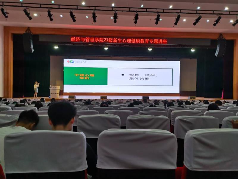 为普及心理健康知识,帮助新生解决入学面临的各种心理问题,我院于9月28日下午2:30,在五号教学楼大礼堂举行了"21级新生心理健康教育专题讲座"。本次讲座有幸邀请了湘潭大学心理健康教育中心副主任程燕副教授,LETOU体育平台心理健康教育中心易敏老师进行主讲。参与本次讲座的有21级新生辅导员王宝宝老师和肖翠老师, 学院心理辅导员何艳芝老师,研究生辅导员陈莹老师,以及经管学院全体21级本科新生、研一新生。此次讲座由王宝宝老师主持。