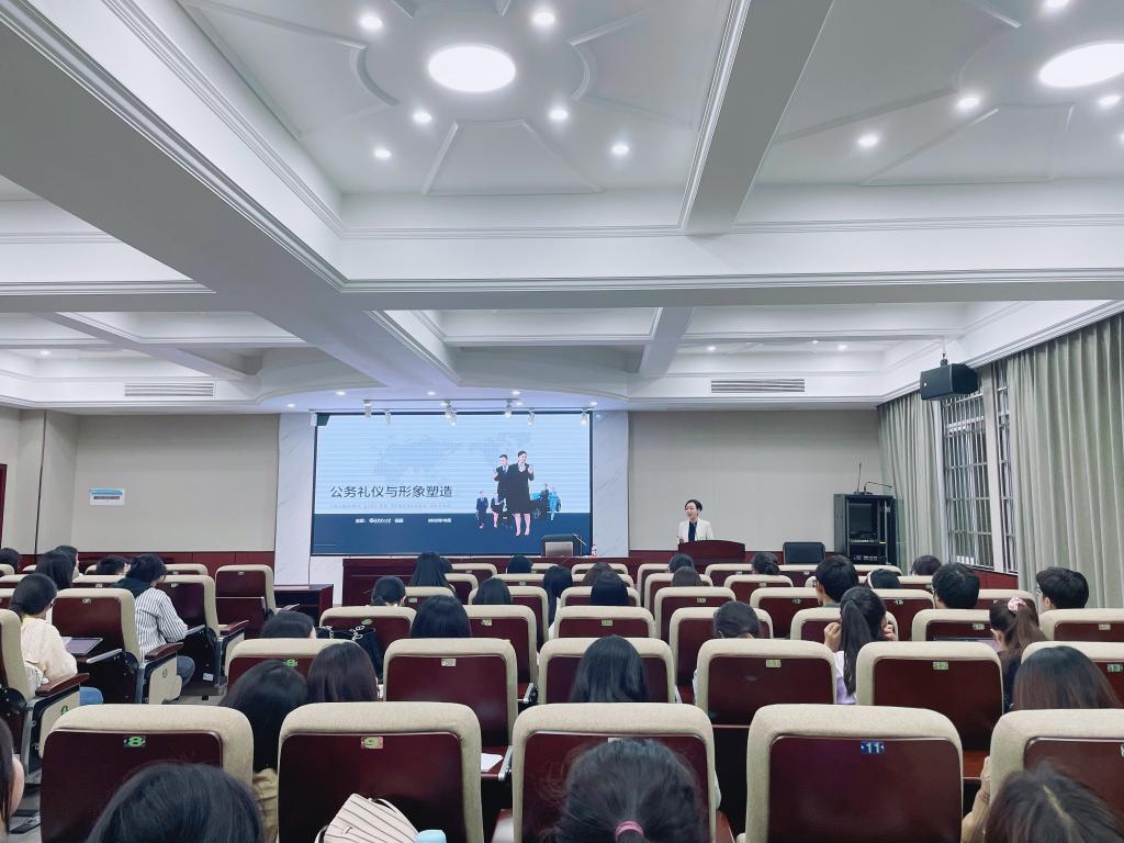 此次讲座分别从公务礼仪要义、公务沟通礼仪、公务座次礼仪等方面详细讲述了公务礼仪的重要意义,以及公务礼仪对树立个人形象和组织形象的重大作用。2小时的讲座,进一步增加了同学们对公务礼仪与形象塑造的重要性的认识,增长了公务礼仪与形象塑造的基本知识,指导了公务礼仪与形象塑造方面的实践能力。