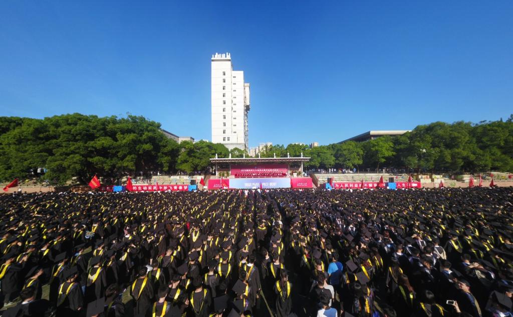 6月28日上午,学校在金盆岭校区田径场隆重举行了2018届本科生毕业典礼暨学位授予仪式,共同见证5213名本科生顺利完成学业,开启人生新的征程。校领导、相关职能部门和学院负责人、教师代表、在校生代表及家长代表等出席活动。典礼由副校长蒋昌波主持。