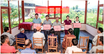宋刘斌宣读表彰文件,并为受表彰的优秀共产党员颁奖。随后,优秀共产党员代表杨忠祥、杨艳群分别作了交流发言。他们回顾了近年来的所做、所思、所见,村里每天发生的变化离不开党和政府的关心,离不开驻村干部的无私奉献,离不开全村干部群众的勤劳和智慧。打铁需要自身硬,作一名有事业的农民,必须坚持自力更生,人穷志不穷,一定要配合扶贫工作队做好脱贫攻坚工作。活动结束后党员们纷纷在横幅上认真签下自己的名字,既表达了对祖国美好明天的祝愿,也表达了跟党走的信心和决心。