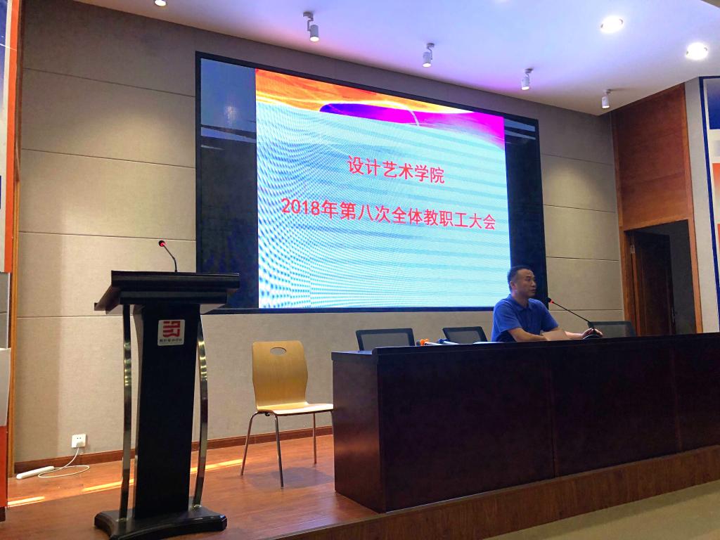 9月18日下午,设计艺术学院在学术报告厅召开了2018年第8次全院教职工大会。会议由副院长张剑主持,全院教职工参加。