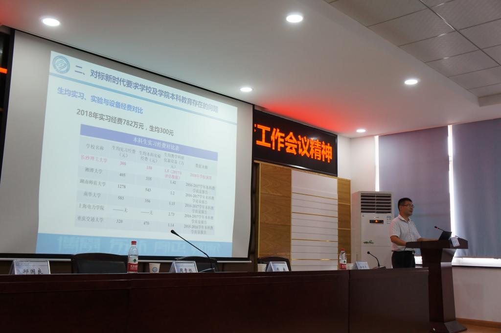 会上,教学副院长何志勇作了《对标要求,紧扣问题,落实新时代本科教育的使命任务》的专题报告。报告从新时代办好本科教育的使命和要求、学院本科教育存在的问题、落实新时代本科教育要求的举措、实施的方案及目标四个方面进行阐述,全面解读全国高等学校本科教育工作会议和教育部《关于狠抓新时代全国高等学校本科教育工作会议精神落实的通知》及学校本科教育工作会议的精神;从学校层面、学院层面、教师层面、学生层面深入分析本科教育存在的问题。他强调,要统一思想、树立以本为本,推进改革、优化人才培养模式;强化队伍建设、建设热爱教学的一流师资队伍;要加强学风建设、营造校园优良学习环境。会议还根据所存在的问题制定了具体的实施方案及目标,将方案及目标要求落到实处。