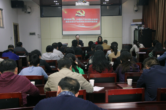 10月26日,继教学院党总支利用教工党支部“主题党日”活动时间,在金盆岭14教200教室,举办学习新修订的《中国共产党纪律处分条例》专题党课活动。校纪委副书记、纪监处长胡秀英受邀主讲。院党总支书记何纯芳主持学习活动。院党政班子成员、全体教职工(含外聘职工)党员和学生党员参加。