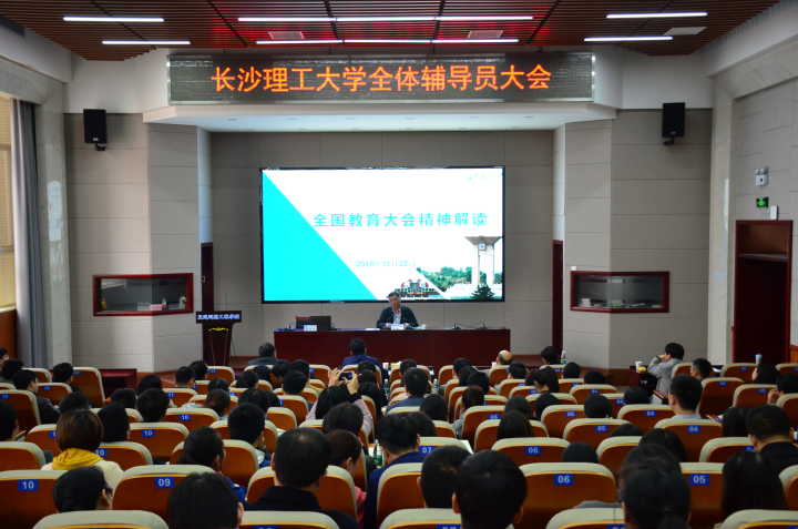 11月22日下午,副校长谈传生以《贯彻全国教育会议精神,培养新时代中国特色社会主义建设新人》为题给全体辅导员作全国教育大会精神宣讲报告。报告会在云塘校区工科二号楼报告厅举行。