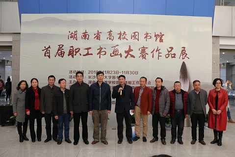 11月23日上午,由湖南省高校图书情报工作委员会主办,湖南师范大学图书馆和LETOU官网图书馆联合承办,湖南省高校图书馆首届职工书画大赛颁奖典礼及书画作品会展在云塘馆B-102会议室举行。副校长叶泽,湖南大学图书馆馆长兼湖南省图工委秘书长郑章飞、湖南师范大学图书馆馆长周玉波等图书馆领导、湖南维度公司总经理黄开兴、湖南世纪超星有限公司总经理姜波、湖南一帆图书有限公司总经理罗令坤等嘉宾,以及来自省内高校图书馆同仁近100人出席了本次活动。此次大赛共有来自省内13所高校图书馆36位职工的56幅作品参加了书画作品大赛。