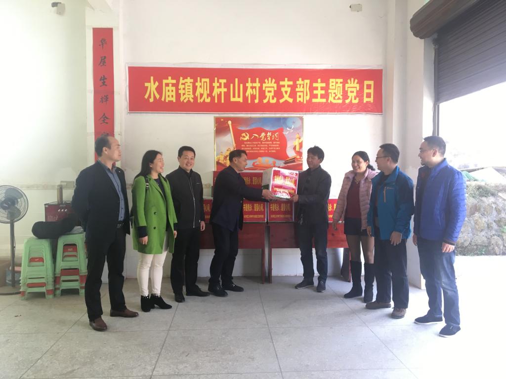 中午1:30,符慧林一行到达扶贫村,与枧杆山村党支部书记杨忠祥进行了简短的交流沟通,并在村党支部临时办公场所举行了捐赠仪式,将学院师生捐赠的300余册图书交给枧杆山村党支部。