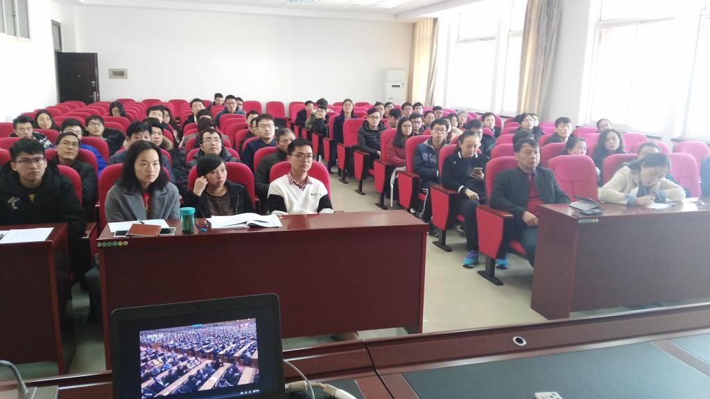 学院自动化系的老师在支部书记何青的组织下,在系会议室单独进行集中收看。部分因故不能参加集中收看的老师,也在家或在工作室自觉收看了大会现场直播。特别部分第一大节有课的老师,课后立即赶回家中或工作室收看了现场直播。