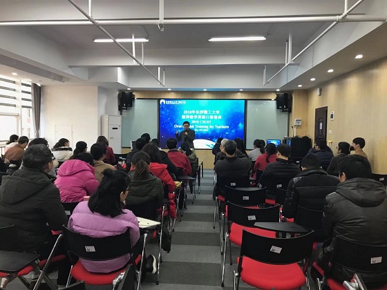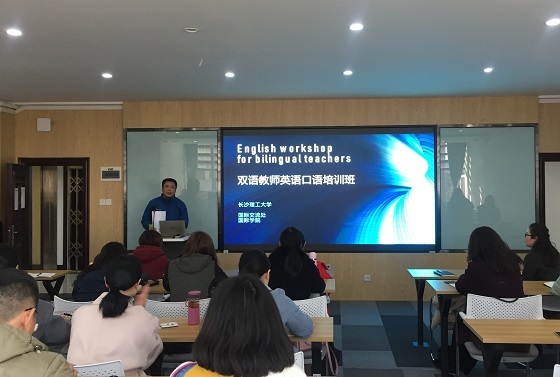 12月18日下午,由学校国际交流处和国际学院联合举办的首届双语师资教学英语口语培训班在国际学院阶梯教室和多功能教室正式开课,来自交通运输工程学院、化学与生物工程学院等各二级学院和部门的126名老师参加了此次培训。