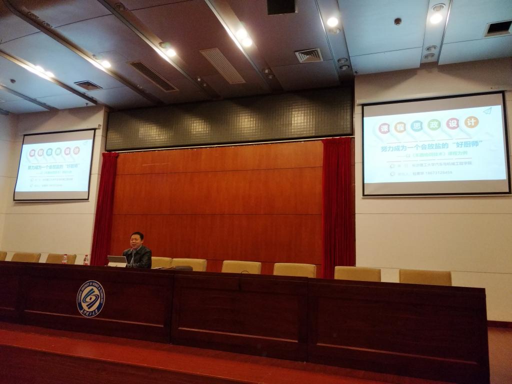 为深入贯彻落实全国高校思想政治工作会议和全国教育大会精神,11月27日,汽机学院编制了《LETOU体育平台汽车与机械工程学院“课程思政”教学设计编制指南》,并向全体教师作了“课程思政”示范课程立项建设动员。12月18日下午,汽机学院再次在云塘校区图书馆报告厅召开全体教职工大会,院长杜荣华就“课程思政”建设作《努力成为一个会放盐的“好厨师”》的专题报告,全院教职工、50名学生参加了会议,会议由副院长何志勇主持。