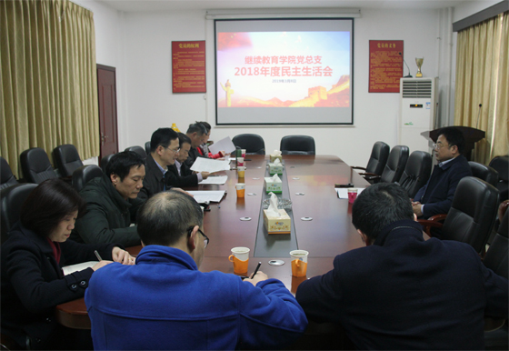 3月8日,继教学院党总支在金盆岭校区15教三楼会议室,召开2018年度民主生活会。校党委副书记邹宏如到会指导。会议由院党总支书记何纯芳主持。