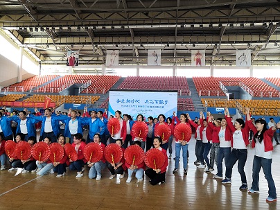 在开幕式表演中,80名图书馆人身着整齐的服装,舞动多彩花盘、穿行变换队形,同声高唱“我们的生活充满阳光”,歌声回响体育馆,舞蹈鼓动气氛浓。图书馆职工展现出健康向上的活力和饱满的精神面貌,赢得现场一片掌声。